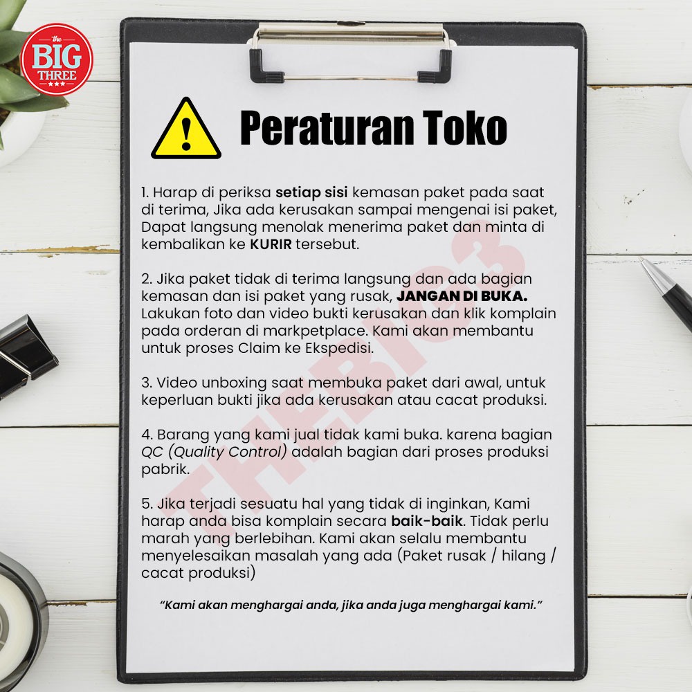 INFO PENGIRIMAN ๐ โ Pesanan yang masuk di bawah jam 12.00 WIB akan di proses dan dikirim di hari itu juga. โ Pesanan yang masuk diatas jam 12.00 WIB akan di proses dan dikirim di hari berikutnya. โ Resi akan di input/dikirim paling lambat 1x24 jam setelah dilakukan pengiriman. โ Barang dikirimkan setiap hari SENIN-SABTU. โ Minggu dan tanggal merah pengiriman libur dikarenakan ekspedisi juga tutup.