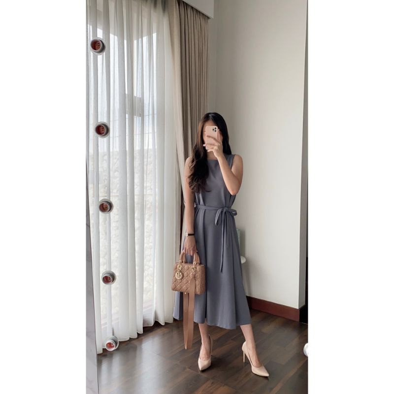 KIO DRESS (185K) Include belt Material : Crepe Spandex Premium Available in off white, cream, khaky, brown, sage green, matcha, light grey, dark grey, black, beige, forest green, lavender blue, sage