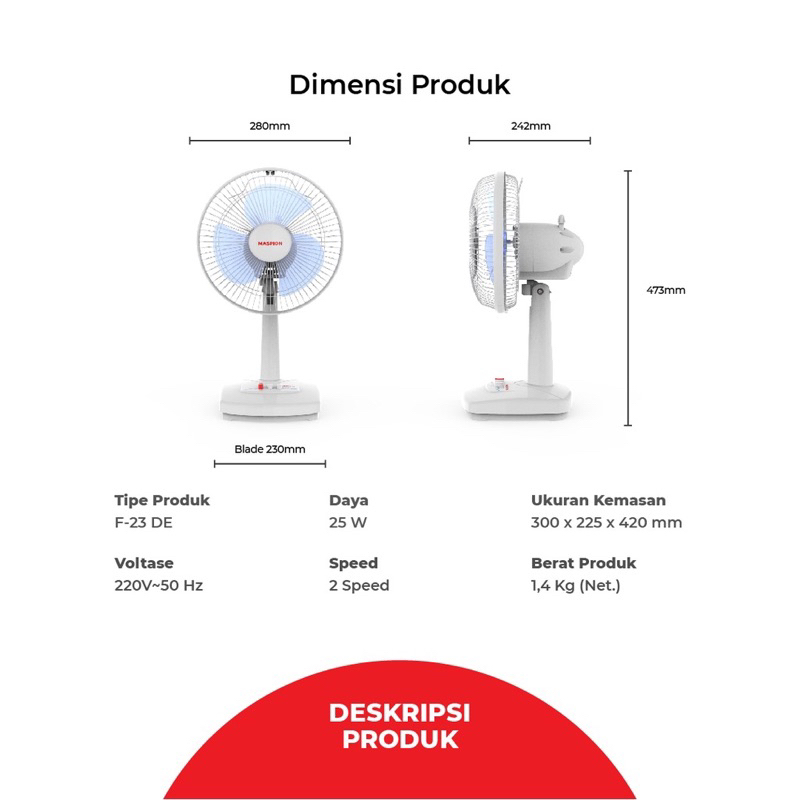 Detail KIPAS ANGIN DESKFAN /DUDUK MASPION F 23DE / BERDIRI 9”