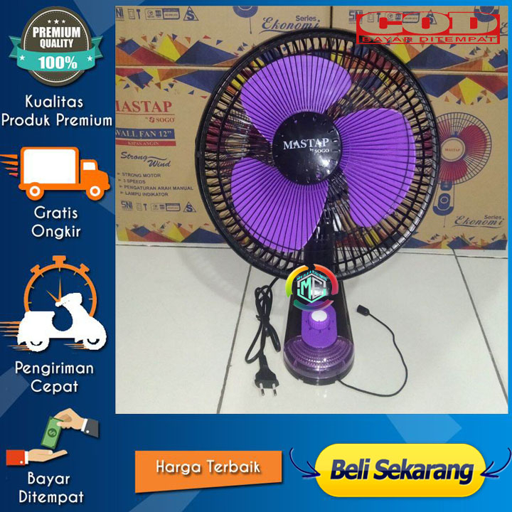 Kipas angin dinding mastap 12 inch, angin nya di jamin menyejukan Produk buatan indonesia ini dikenal produk yang murah dan berkualitas berstandar SNI Desain yang mewah dan elegan, sesuai dengan interior rumah anda. Dibuat dari motor yang dapat berputar. Mudah digunakan hanya dengan menyentuh tombol-tombol. kipas angin 12Inch Dilengkapi 3 Pilihan Kecepatan, Body Kokoh & Stabil Mesin Halus & Bertenaga Hembusan Angin Kencang Lulus Uji Standar SNI