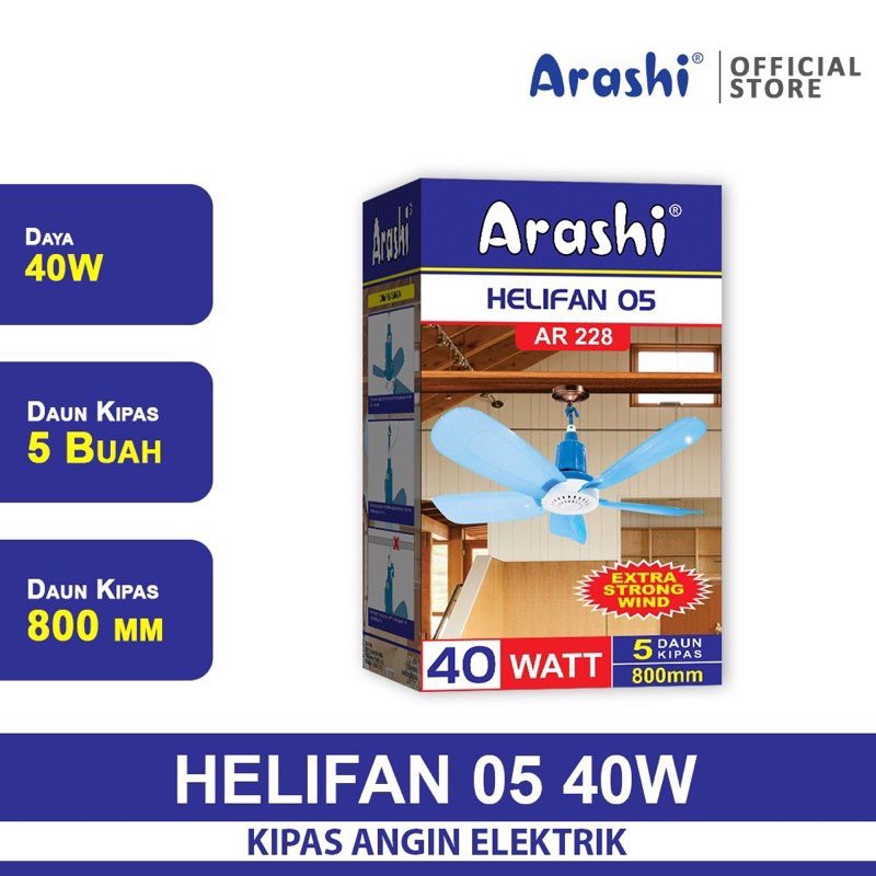 Kipas Angin Gantung Helifan Arashi 40watt Tipe : AR 228 Model : Helifan 05 Daya : 40 Watt Panjang baling : 30cm Voltase : 220V Frekuensi : 50Hz