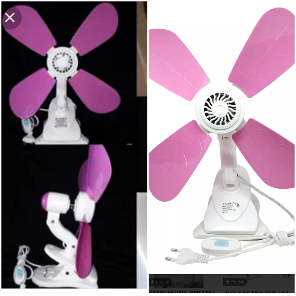 Kipas Angin Jepit JFC09-390 KYZUKU. Suara Halus, hembusan kencang dan hemat listrik Baling-baling kipas aman tidak melukai walaupun tidak ada pelindung Bisa digunakan : Duduk (dimeja atau Lantai) Di jepit ( bisa di jepit di kayu/meja dll) Di Tempel ( di paku seperti jam dinding)