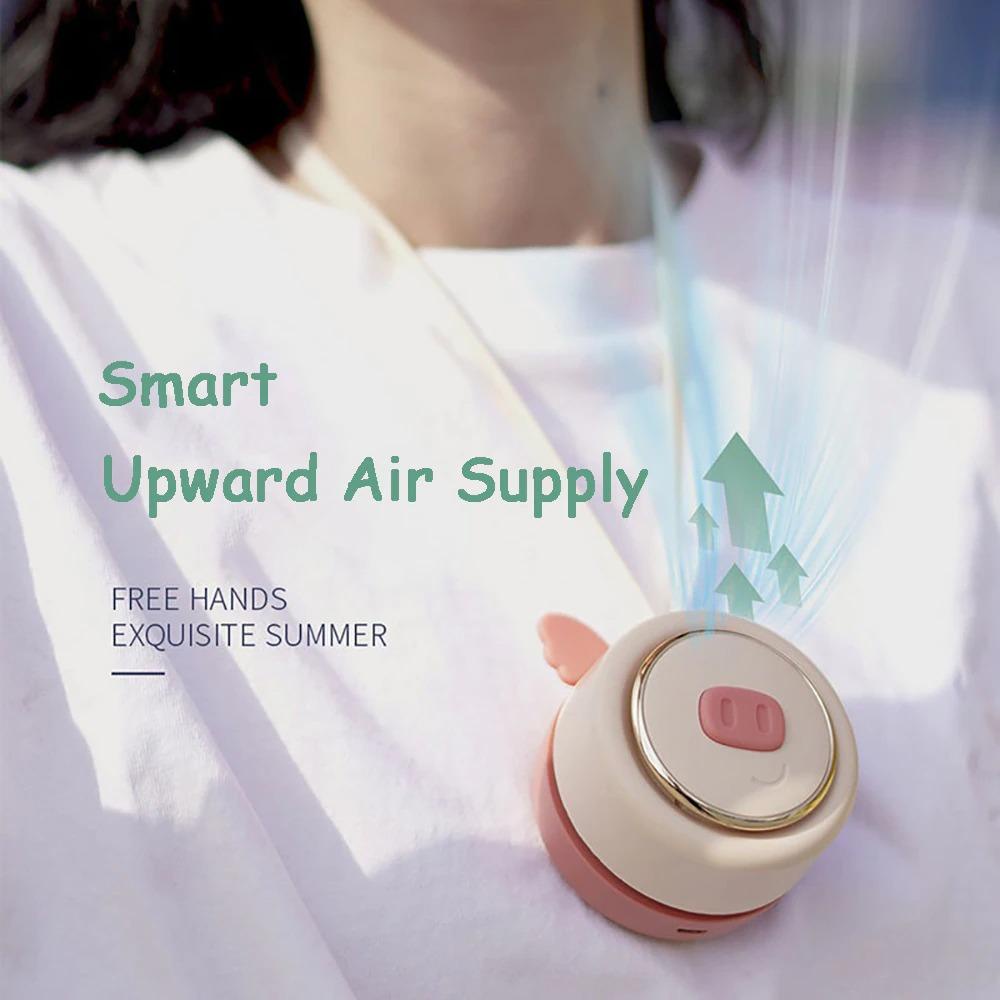 Detail Kipas Angin Kalung Portable Bladeless Fan Neck Model Cute Pig - Mix Color