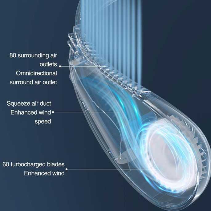 Detail Kipas Angin Leher Portable Neck Fan Rechargeable 5000mAh - White