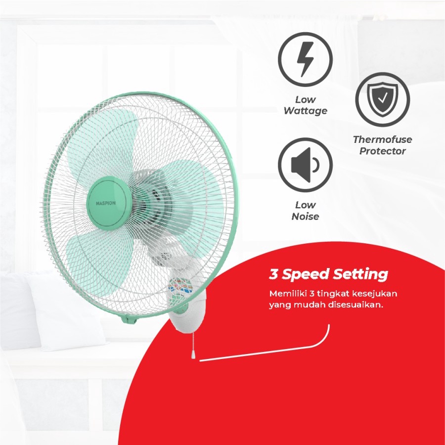 Spesification Blade Size: 16" (400 mm) Power : 55 W/220V-50 Hz Switch Control : Manual Speed : 3 speed Weight : 3,2 kg Outer Box Dimension : 455x150x675 mm RPM : 1130-1330 Rpm/Min Product Dimension : 450x352x555 mm Garansi 5 tahun resmi maspion