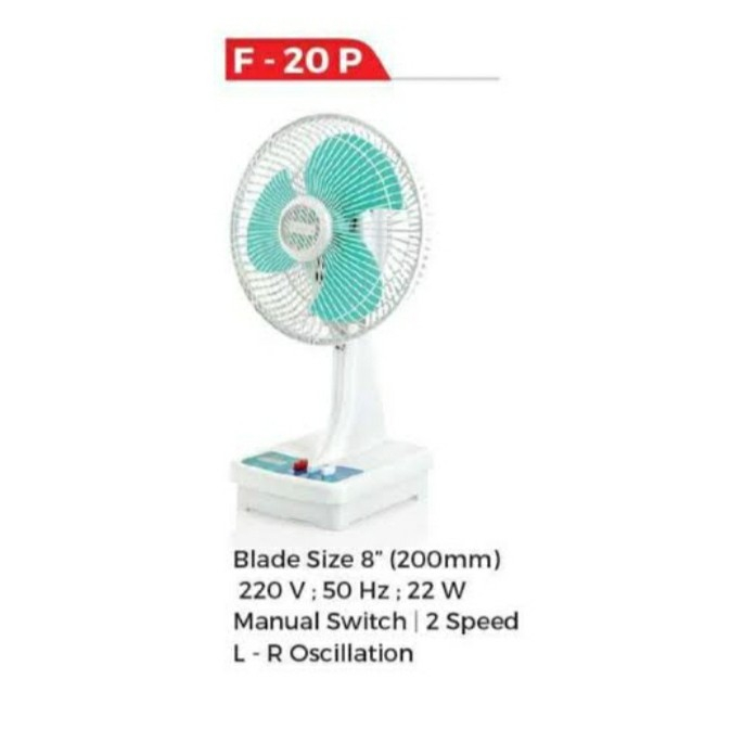 B. Blade Size : 7" (180 mm) Wattage : 20 W Voltage : 220 V 50 Hz Switch Control : Manual Speed : 2 speed Dimensi (6 pcs/ pack): 707 x 515 x 443 mm