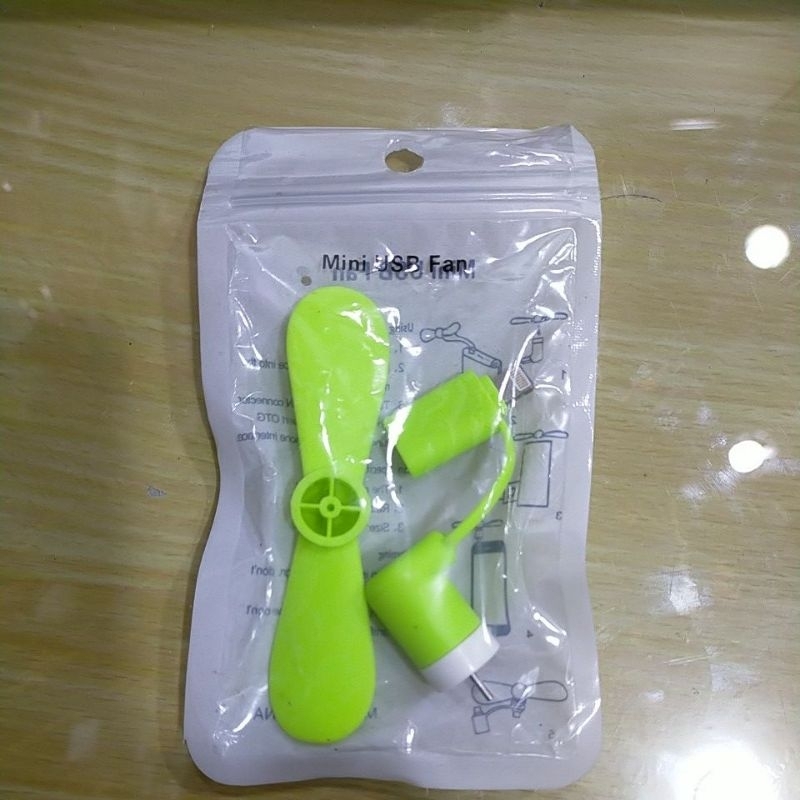 Kipas angin Mini dengan colokan micro + converter iPhone lightning. Ada 3 warna : Hijau, Biru dan Pink (tulis warna yang diinginkan, bila kosong, kita akan info, bila tidak ada respon, maka kita akan mengirim warna random)