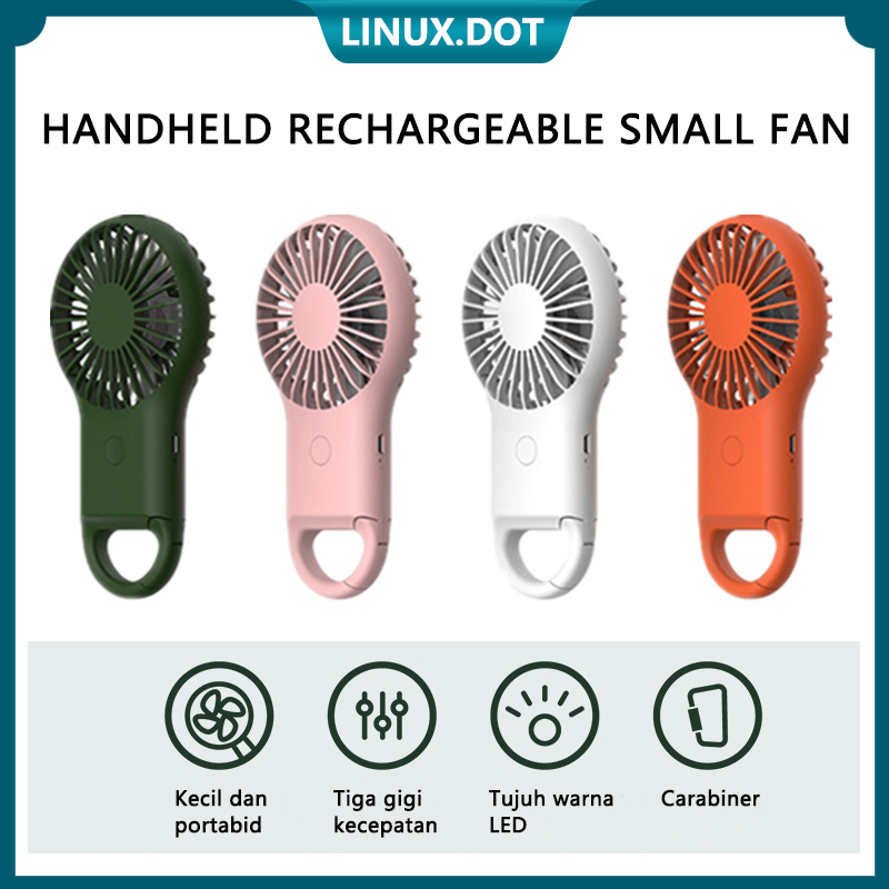 Fitur: 1. Mini portable, desain carabiner, bisa digantung 2. Tiga kecepatan angin 3. Dengan lampu tujuh warna