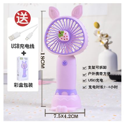 Handphone & Aksesoris > Handphone & Tablet Aksesoris > Kipas USB > Kipas Angin Mini Genggam dengan DUDUKAN dan stand HP Rechargeable USB / Kipas Angin Mini Cute Karakter KELINCI WORTEL stoberi TELINGA
