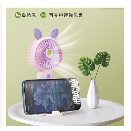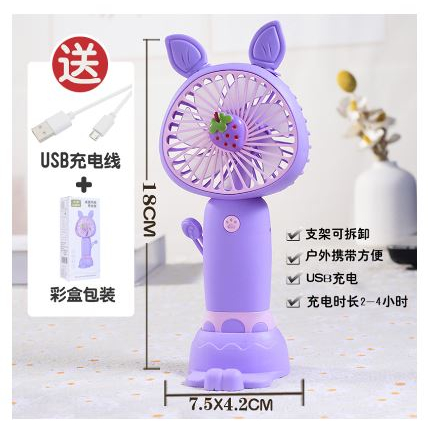 Kipas Angin Mini Genggam dengan DUDUKAN dan stand HP Rechargeable USB / Kipas Angin Mini Cute Karakter KELINCI WORTEL stoberi TELINGA