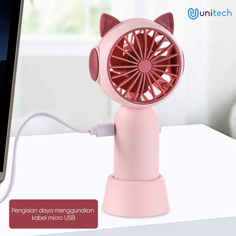 Detail Kipas Angin Mini Portable Unitech / Kipas Tangan Genggam Rechargeable 9939