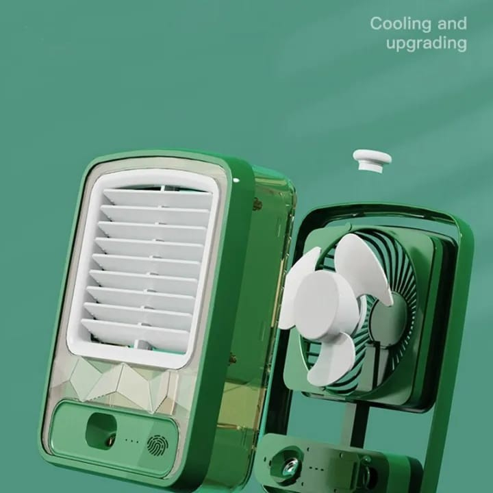 Fitur : * Pendingin ruang pribadi yang memungkinkan Anda memiliki zona nyaman pribadi. * Mendinginkan, melembabkan dan memurnikan untuk udara yang lebih baik. * Kompak & Kuat. * 7 Warna Lampu LED dengan Timer (Cahaya dekat), * Cukup tambahkan air, pasang, dan nyalakan. * Bebas freon, hemat energi