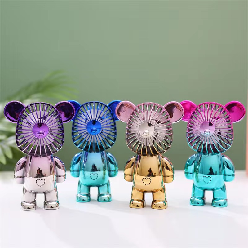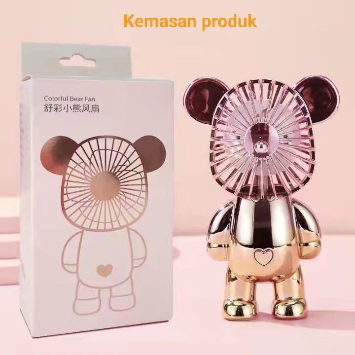 Detail Kipas Angin Portable Mini Kartun Beruang USB Charge Gradien Pelapisan Warna Murah