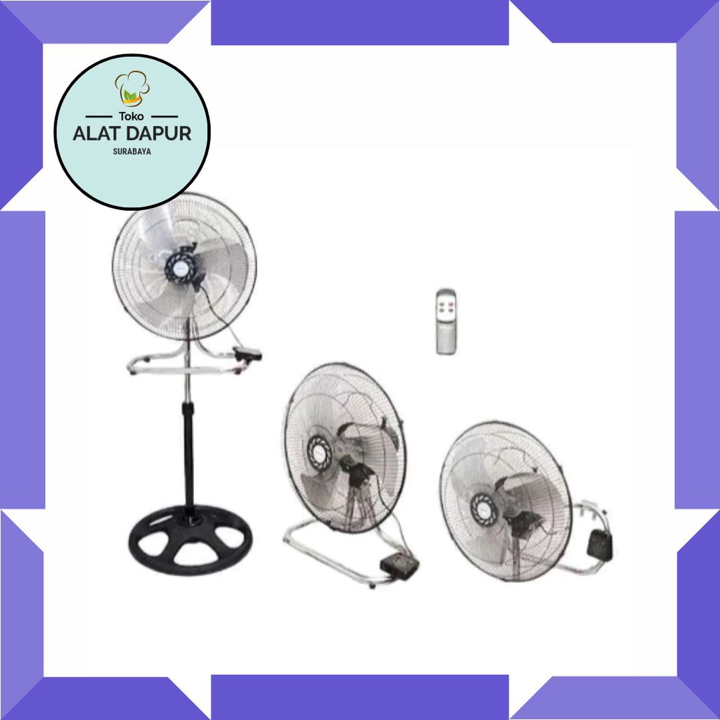 Kipas ini memiliki fitur thermofuse yang berguna sebagai pengaman dan mencegah terjadinya over heat pada motor kipas. Memiliki daya hemat yaitu 90 watt. Selain itu kipas ini memiliki bagian – bagian yang mudah untuk di bongkar pasang, menjadikannya lebih mudah untuk dibersihkan. Dengan standar SNI menjadikan kipas ini bisa digunakan dan diletakkan dimanapun sesuai dengan yang Anda inginkan. • 3 in 1 (Stand, Wall, Floor Fan) Remote Control