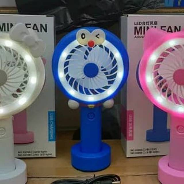 Kipas Angin Portable Karakter Doraemon & Hello kitty LED