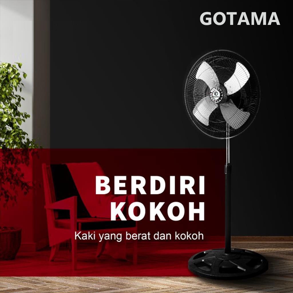 Stabil dan Kokoh Dengan dudukan yang besar, kipas angin ini dapat berdiri dengan tegak, stabil dan tidak mudah terjatuh, untuk selalu menjangkau arah hembusan angin yang lebih tinggi dan luas.