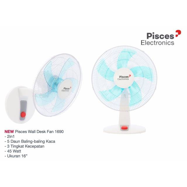Elektronik > Pendingin Ruangan > Kipas Angin > Kipas Angin/Wall Fan / Kipas Angin Dinding Dan Meja 2in1 Pisces 1690 Teknologi Bearing Angin Kuat Dan Kencang HARGA PROMO