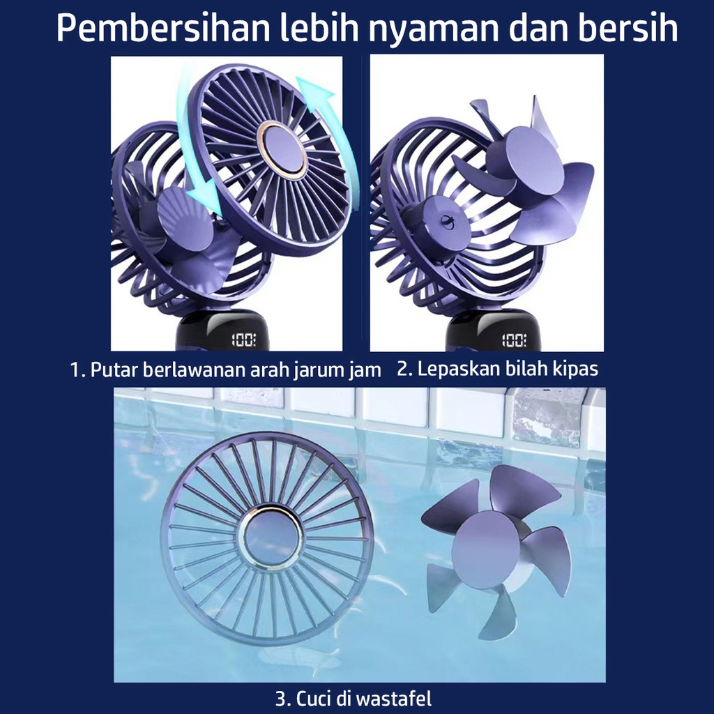 Keunggulan: đ1.ăDesain 3-in-1ă Kipas genggam, kipas meja, kipas leher, mini dan kompak dapat dibawa kemana-mana, sangat hemat ruang, kipas kecil ini dapat dipegang dengan nyaman di tangan Anda, dilipat 190 ° ke tempat di meja Anda, atau Gantung di leher Anda (kabel sudah termasuk dalam paket). đ2. ăLayar LEDă Kipas mini USB ini memiliki baterai 10000mAh bawaan dan tampilan digital yang menunjukkan persentase baterai waktu nyata, yang sangat membantu Anda menghemat energi pengisian daya dan mengendalikan semuanya. Kipas mini dilengkapi dengan alas, yang dapat digunakan sebagai dudukan ponsel dan desktop, bebaskan tangan Anda, dan berikan kepada Anda yang suka menonton drama. đ3. ăPenyesuaian kecepatan angin 5 kecepatanăJangan remehkan kipas mini ini, kipas ini memiliki tenaga yang kuat. Anda dapat menekan tombol daya berulang kali untuk menyesuaikan kecepatan angin 5 kecepatan. Jangan khawatir tentang mudah berkeringat di musim panas. Penutup jala dapat dilepas, mudah dibersihkan. đ4. ăOperasi Senyapă Kipas pribadi mengadopsi motor tanpa sikat yang kuat, kecepatannya lembut, resistansi berkurang, sangat sunyi saat digunakan, dan tidak akan memengaruhi tidur Anda atau siapa pun di sekitar Anda. đ5. ăPengisian USBă Kipas ini memiliki port pengisian USB, yang dapat diisi oleh pengisi daya USB, laptop, komputer, bank daya, dan perangkat lain.