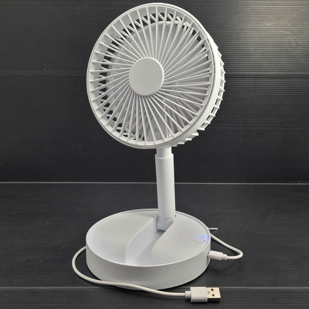 Kipas Meja dapat ditarik dan dilipat sehingga mudah disimpan dan dibawa berpergian, dilengkapi 2 mode pemakaian yaitu menggunakan baterai untuk pemakaian saat berpergian dan menggunakan listrik secara langsung untuk pemakaian terus menerus. Kipas ini pun dilengkapi tiang teleskopik yang memungkinkan kipas bisa diatur tinggi rendahnya serta bisa diatur sudut kemiringan naik turunnya hingga 180 derajat.