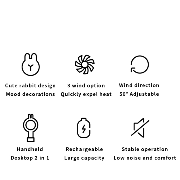 Kipas mini portabel yang lucu ini siap mengusir rasa gerah di mana pun Anda berada. Kipas dibekali dengan 3 pilihan kecepatan yang mudah diakses. Jika lelah menggenggamnya, Anda dapat menggunakan stand yang tersedia untuk menjadikannya kipas meja. Agar lebih puas, Anda dapat mengubah posisi kepala kipas untuk mengarahkan hembusan angin. Anda pun tak perlu membeli baterai, cukup isi ulang daya kipas menggunakan kabel USB yang tersedia.