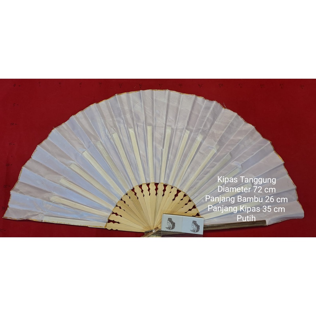 kipas tari kipas kain kipas ukurang tanggung rangka dari bambu kain dari saten pelis ada beberapa warna cek variasi panjang bambu 26 cm diameter kain 72 panjah kipas dri pangkal bambu sampai dengan pangkal kain 35 cm berat 70 gram