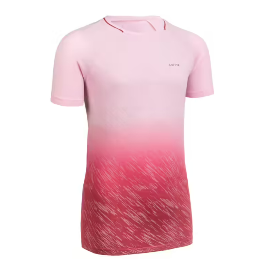 KIPRUN AT 500 Kaos Lengan Pendek Olahraga Lari Anak Perempuan ------------------------------- Desainer kami yang terdiri dari atlet penuh semangat, merancang kaos lengan pendek ini untuk anak perempuan melakukan olahraga atletik di klub atau di sekolah. Kain super ringan dan tidak adanya kelim membuat kaos ini akan menjadi teman baik anak Anda selama latihan di cuaca panas dan menjaga tubuh tetap kering bahkan selama latihan dengan intensitas tinggi. Kain utama: 28.0% Polyamide (PA), 72.0% Polyethylene Terephtalate (PET).