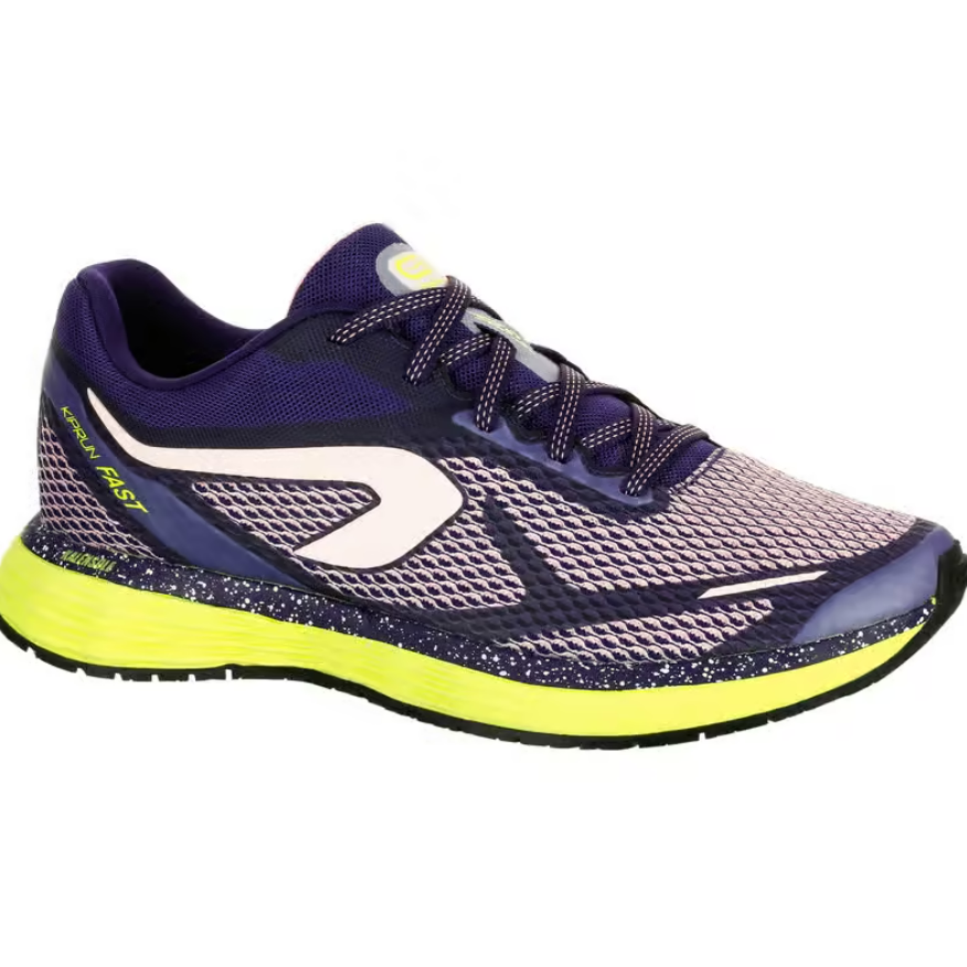 KIPRUN Sepatu Lari Wanita Dengan Bantalan Busa Kalensole dan K-ring ----------------- Desainer kami, yang juga seorang pelari, telah mengembangkan sepatu ini untuk menambah kecepatan saat latihan atau kompetisi. Kompromi utama antara dinamisme dan bantalan untuk berlari sejauh 10 km dan jarak maraton.