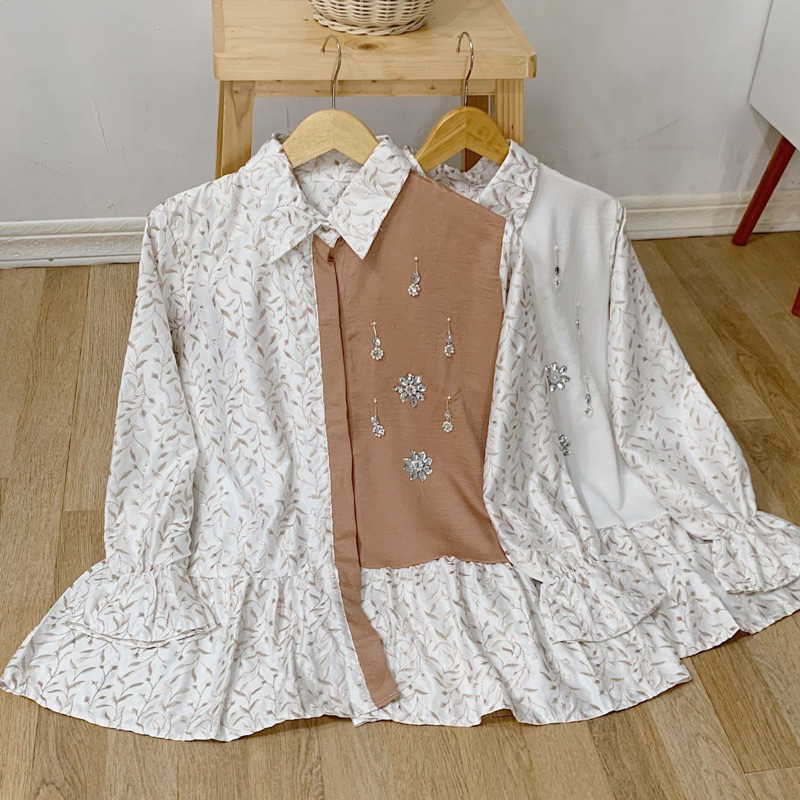 #MaysaaKiraBlouse Blouse satu ini mmg cakep bgt deh. Modelnya feminim dengan motif bordiran dan payet yang dijahit yang menjadikan blouse ini cantik banget. Dibagian lengan terdapat karet dengan model terompet sehingga wudhu friendly.