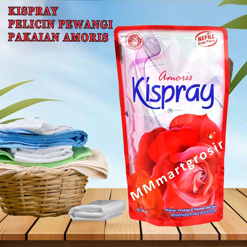 Kispray Pouch Refill Amoris 280ml Kispray adalah produk Ironing Aid yang memberikan keharuman tahan lama pada pakaian dan memudahkan proses menyetrika pakaian. Manfaat: - Kispray dengan formula 3 in 1 (pelicin, pewangi, dan pelembut) sehingga pakaian menjadi cepat licin saat setrika, memberikan keharuman yang tahan lama, dan membuat kain menjadi lembut/tidak kasar. - Kispray mengandung bahan aktif anti kuman yaitu alkyl dimethyl benzyl ammonium chloride, yang efektif membunuh kuman penyebab bau apek dan mencegah tumbuhnya jamur pada pakaian. - Kispray lebih hemat, karena tersedia dalam kemasan sachet, hanya perlu ditambahkan air dan tinggal disemprot saat setrika sehingga parfum langsung terserap oleh kain. - Kispray praktis, karena tersedia juga dalam kemasan refill pouch yang bisa langsung digunakan.