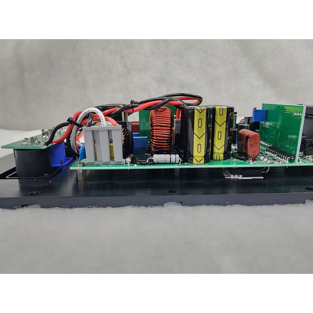 ukuran 16 cm x 38 cm class D tahan panas switching electrical sistem bobot ringan hanya 2.5 kg 1300 watt max power single output aktif amplifier bisa dirakit 2 way, 3 way, 15" dobel ataupun line array speaker tersedia speakon out jek ke stereo sudah menggunakan kabel listrik khusus material body almunium