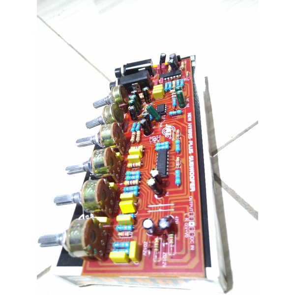 SPESIFIKASI : - TONE STEREO - ECHO & 2 INPUT MIC - SUBWOOFER BUILT IN - TONE MUSIK - JARAK ANTAR POTENSIO 2.4 CM ( DI UKUR DARI TITIK TENGAH POTENSIO ) - INPUT STRUM DC 15-30 VOLT CT - IC CONTROL : LM324 / JRC4558 / PT2399 - DIMENSI : P 5.5 CM / 17.5 CM / T 2.5 CM - 6 POTENSIO VOL MIC - ECHO - VOLUME MUSIK - SUBWOOFER - BASS - TREBLE