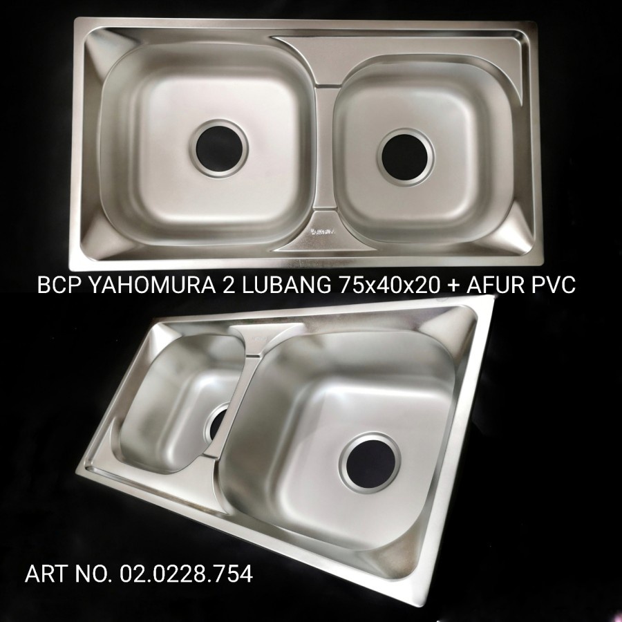 Sink / Bcp 2 Lbg Stainless Steel tebal dan dalam Yahomura