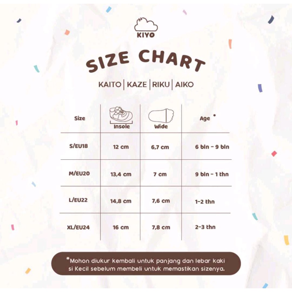 Keunikan dari sepatu KIYO adalah terdapat TOE PROTECTION DESIGN di bagian depan sepatu untuk menghindari kaki si Kecil terluka ketika berjalan dan bermain, dan juga memiliki ANTI SLIP SOLE untuk menghindari si Kecil tergelincir saat bermain.