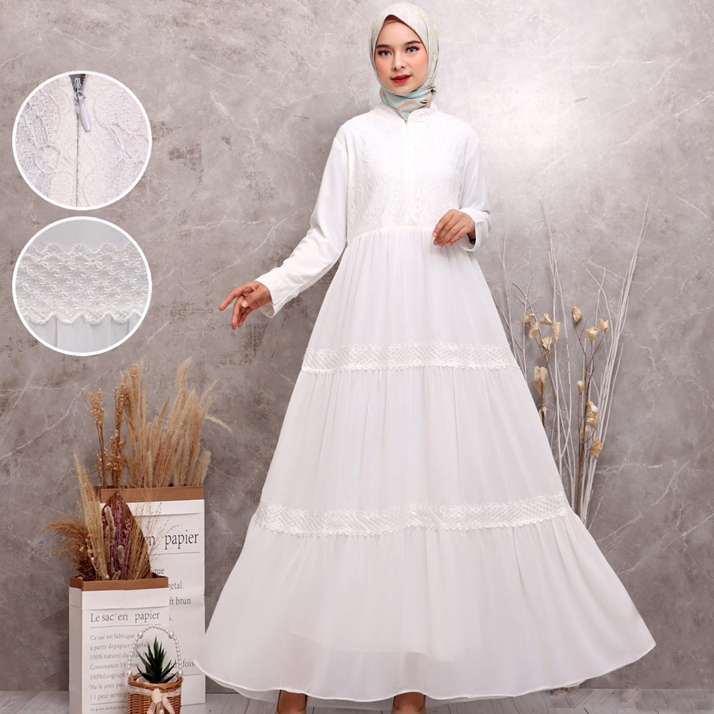 Baju Muslim Wanita / Busana Muslim /Gamis Wanita / Gamis Putih / Gamis Brukat