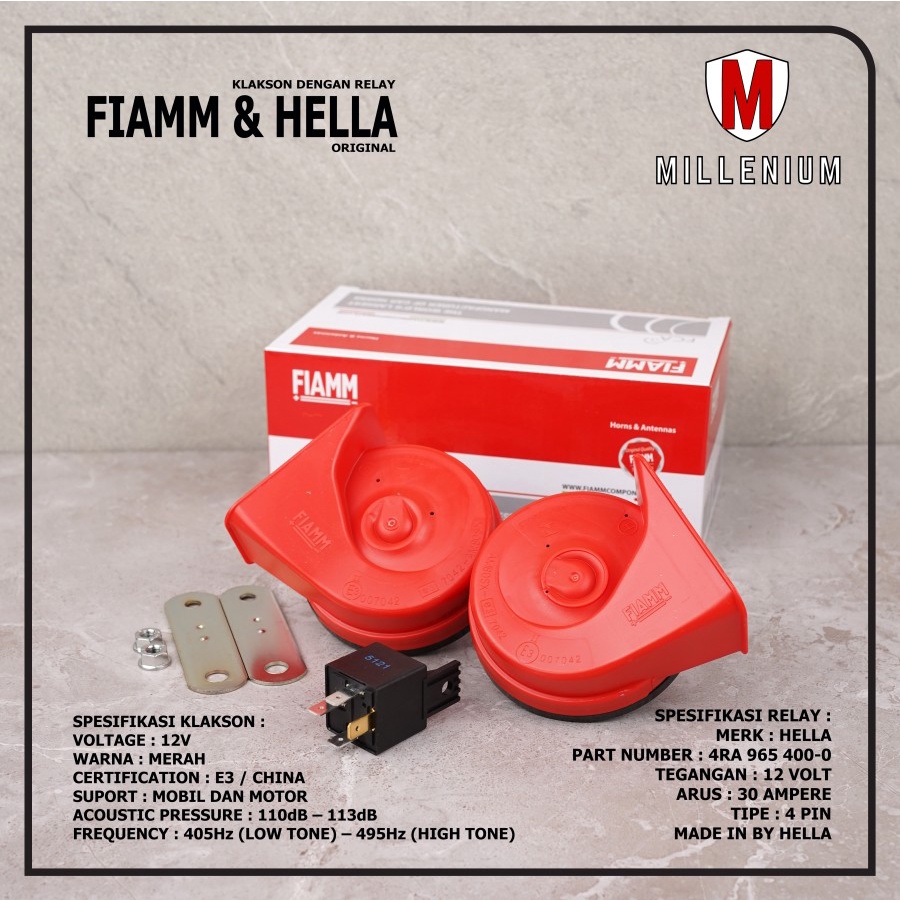 Detail KLAKSON KEONG FIAMM MERAH MOBIL MOTOR DENGAN RELAY 4 KAKI 12V ORIGINAL