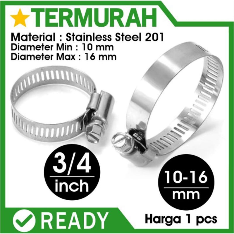 Perlengkapan Rumah > Perlengkapan Rumah Lainnya > klem Selang Gas Stainless 3/4" 3/4 inch 3/4 inchi Hose Clamp Penjepit 10-16 mm