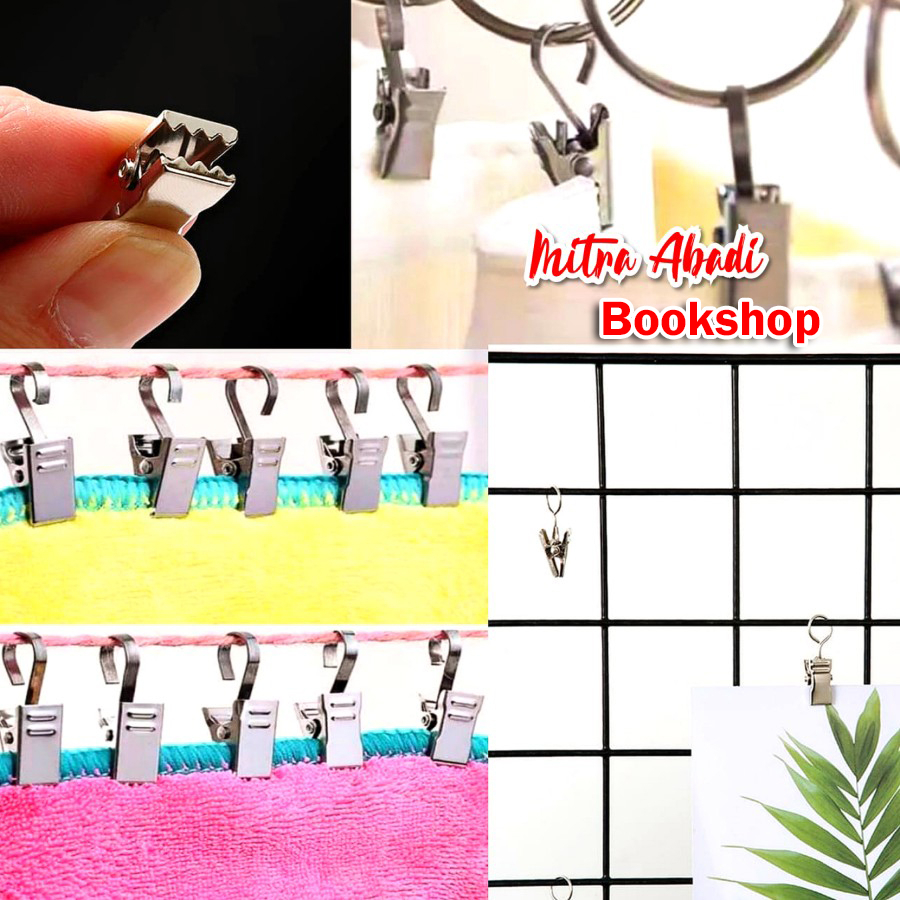 *Fitur* - Terbuat dari besi berkualitas tinggi, perak klip tahan lama dan tidak mudah berkarat, dapat digunakan untuk waktu yang lama. - Pegangan halus dan mengkilap, portable dan kompak, mudah digunakan di mana-mana. - Klip ini sempurna untuk menggantung tirai shower, lampu Natal, lampu LED light string, foto kawat tembaga, teras lampu lentera tenda dll.