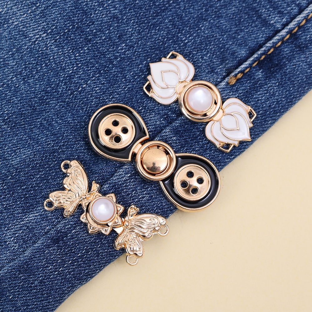 Detail Klip Pinggang Mengencangkan Pinggang Bros Untuk Celana Denim Longgar, Rok, Jeans Adjustable Pinggang Gesper Extender Wanita Mode Sederhana Kartun Bunga Jeans Extender Tombol