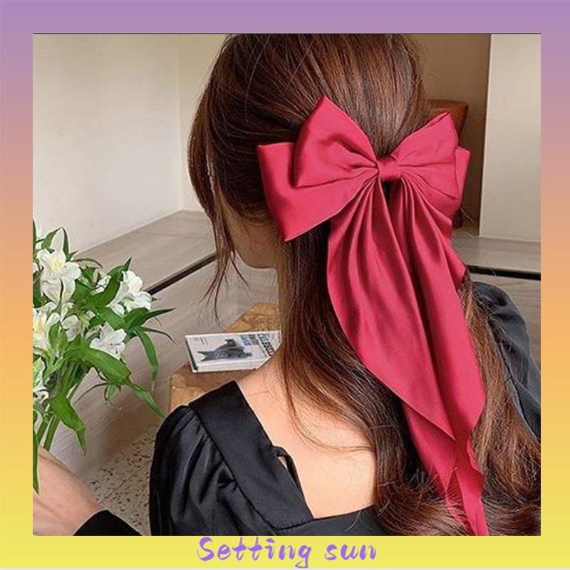 Detail Klip Rambut Pita Besar Korea Elegan Jepit Rambut Busur Panjang TN