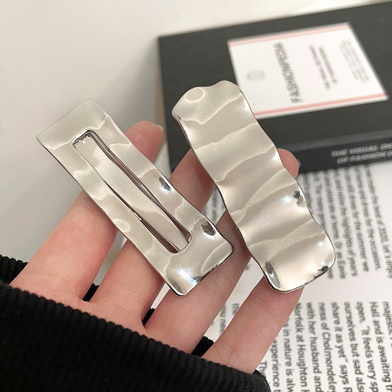 Detail Klip Sisi Gelombang Tidak Teratur Angin Dingin Logam Minimalis/Ins Style Silver Geometric Duckbill Clip Populer Aksesoris Rambut