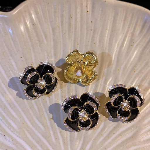 Detail Klip Telinga Mutiara Hitam Ladies Bunga Halus Klip Telinga Berlian