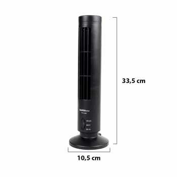 Kipas angin dengan desain memanjang ke atas seperti tower ini sangat cocok digunakan oleh Anda yang ingin kipas angin minimalis. Kipas minimalis ini tidak menggunakan baling-baling pada umumnya sehingga ketika bekerja, suara dari kipas tidak terlalu berisik. Memiliki 2 tingkat kecepatan kipas yang membuat Anda dapat mengaturnya sesuai dengan kenyamanan Anda. Fitur Desain Tower Kipas angin ini berbentuk memanjang keatas seperti tower sehingga tidak memakan banyak tempat diruangan Anda. Berkat bentuknya yang minimalis, kipas ini sangat cocok untuk diletakkan di atas meja, dan membuat Anda lebih sejuk ketika bekerja, membaca atau bersantai. Tanpa Baling-Baling Kipas angin ini tidak menggunakan sistem baling-baling seperti kipas angin pada umumnya. Berkat teknologi leafless ini membuat kipas angin ini sangat sunyi saat beroperasi. Dengan Colokan USB Kipas Angin ini ditenagai menggunakan kabel USB yang dapat dihubungkan ke sumber daya yang menggunakan USB port seperti laptop, PC, power bank, dan lain-lain.