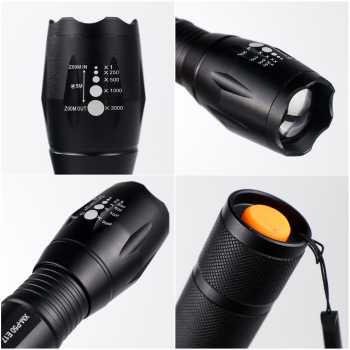 Senter LED ini memiliki cahaya yang kuat dan memiliki body solid karena terbuat dari bahan aluminium. Menggunakan LED CREE XM-P50 dengan cahaya mencapai 8000 lumens dan terdapat 5 mode seperti high, medium, low, strobe dan SOS. Jika setelah dipasang dan baterai tersebut kosong, maka silahkan charge kembali selama 12 jam. Fitur CREE XM-P50 LED Senter LED ini dilengkapi dengan sebuah LED CREE XM-P50 LED yang sangat dapat menghasilkan cahaya hingga 8000 lumens. Baterai 18650 Abda dapat menggunakan sebuah baterai 18650 atau 3 buah baterai AAA sehingga sangat hemat energi dan mudah untuk diganti. 5 Mode Cahaya Terdapat 5 mode cahaya yaitu high, medium, low, strobe dan SOS. Anda bisa menggunakan mode senter sesuai dengan kebutuhan Anda. Material Kuat Seluruh tubuh dari senter dibuat dari bahan aluminium alloy sehingga tahan banting dan tidak cepat rusak. Lengkap dengan Charger Baterai Anda akan mendapatkan sebuah charger untuk baterai 18650 sehingga tidak perlu repot membelinya secara terpisah. Kelengkapan Produk Rincian yang Anda dapatkan untuk pembelian produk ini: