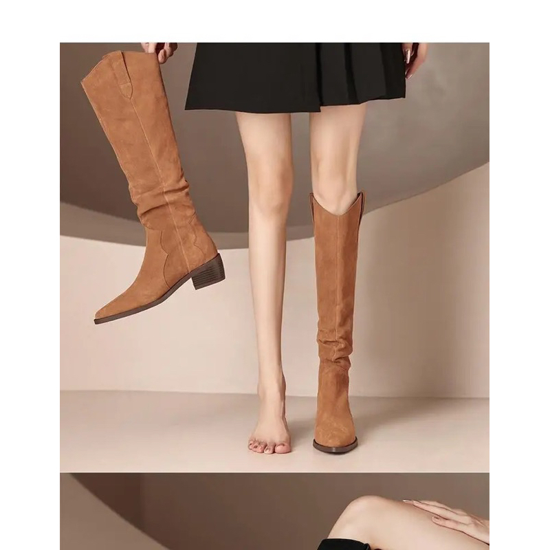 Detail Knee Suede Boots With heels Boots Hak selutut bahan suede