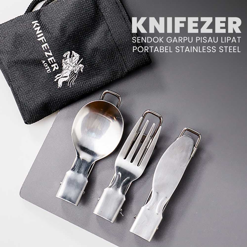 Informasi Produk KNIFEZER Set Alat Makan Sendok Garpu Pisau Lipat Portable Cutlery - AOTU
