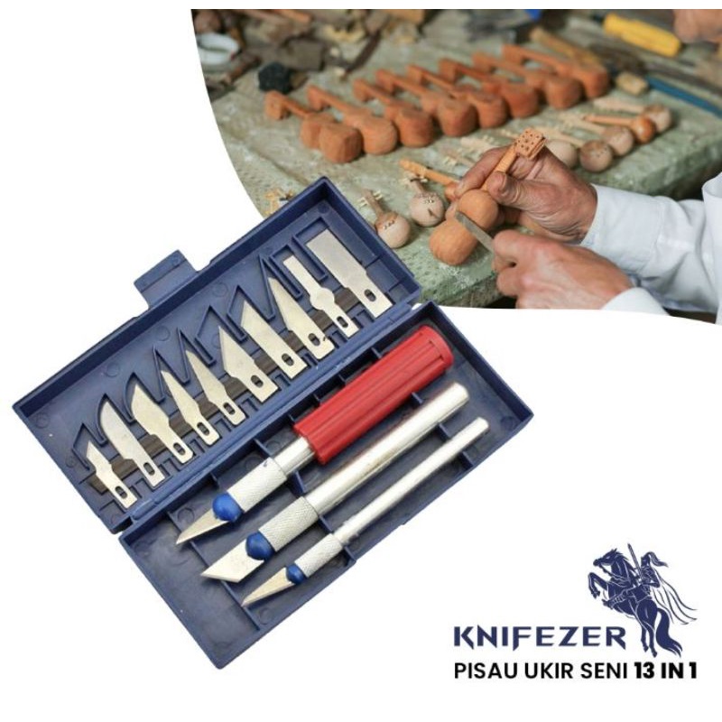 Dalam satu set alat ukir dan pahat terdapat 13 buah mata pisau yang tajam dan 3 pegangan pisau yang dapat Anda pilih sesuai dengan kenyamanan pada saat memahat.