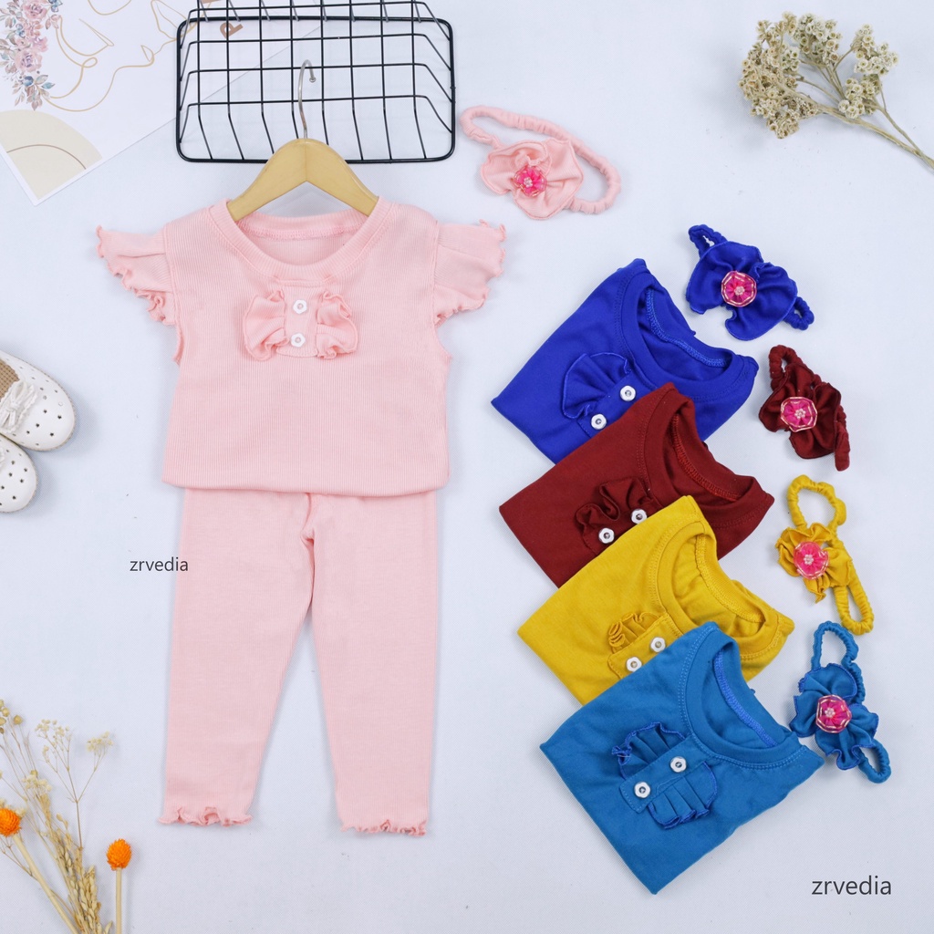 Detail (KNIT) Setelan Cotton Rib uk Bayi - 3 Tahun / GRATIS BANDANA Set Legging Perempuan Baju Anak Celana Panjang Polos Katun Rib KiosBalitaAprillia