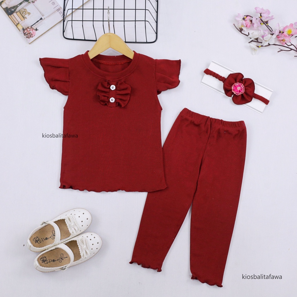 (KNIT) Setelan Cotton Rib uk 3-18 Bulan / GRATIS BANDANA Set Legging Perempuan Baju Anak Cewek Celana Panjang Polos Katun Rib Import Babycinnamon