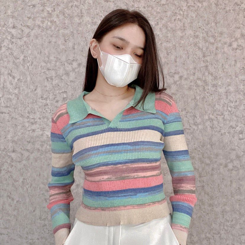 Video perkenalan produk Knitwear Sweater Crop Rajut Sweater Bergaris Baju Rajut Import Crop Top Lengan Panjang. Sumber: Shopee.