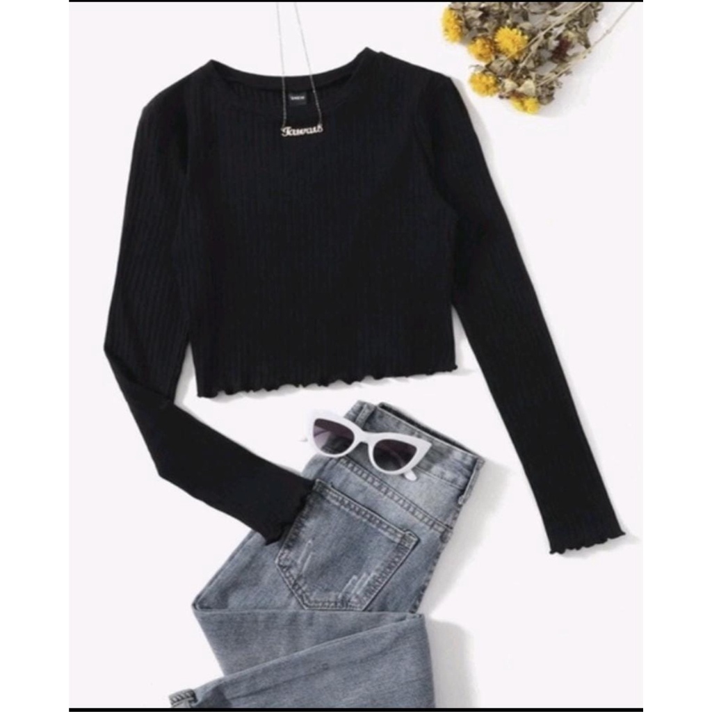 Kaos Polos Rip CROP TOP Lengan Panjang Wanita Detail Ukuran Ukuran FIt To S LD : 82 CM LP ; 64 CM PJ : 40 CM